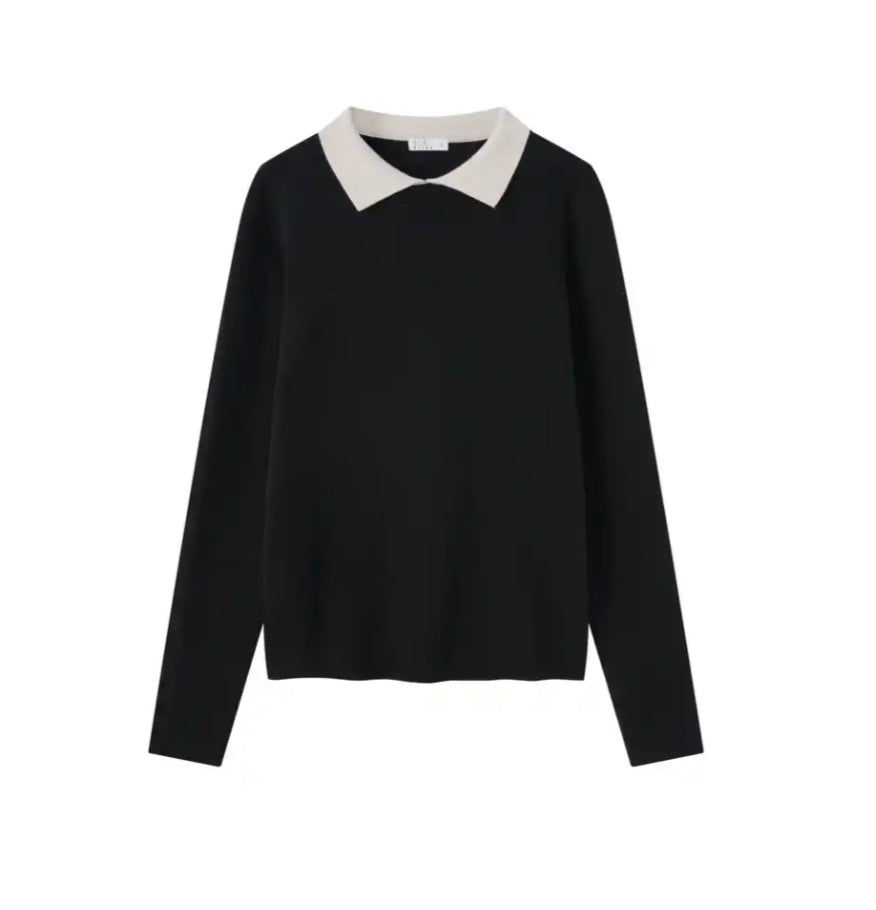 Coco Blanc Black w/ Cream Sweater With Collar