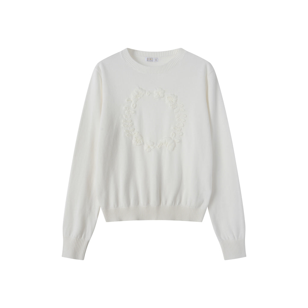 Coco Blanc Cream Chunky Crew Sweater with embossed center