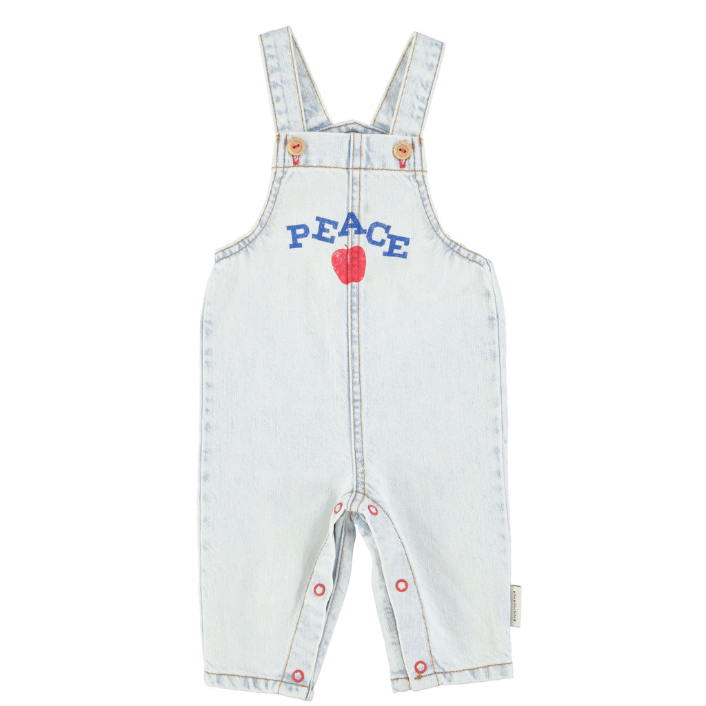 Baby Dungarees With Press Studs At The Crotch For Easy Opening. Adjustable Straps With Wood Buttons. Detailed With Front Print And Red Logo Embroidery On The Back Pocket.